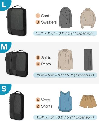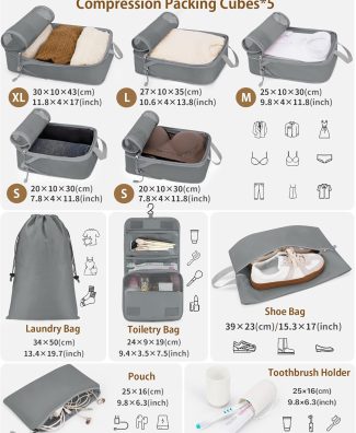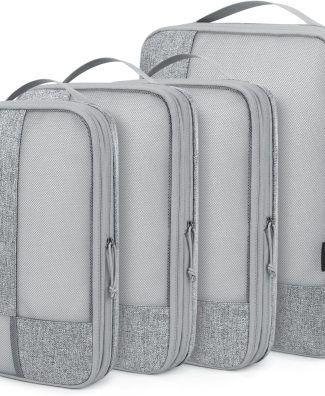 • BAGSMART Compression Packing Cubes for Travel, 4 Set Travel Packing Cubes for Carry on Suitcases, Compression Travel Cubes & Suitcase Organizer for Packing with Shoe Bag Grey