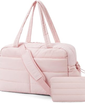 • Travel Duffle Bag Gym Bag for Women, 31L Puffer Tote Bag Quilted Laptop Carry on, Weekender Overnight Bag Organizer Duffel Bag for Travel, Pink