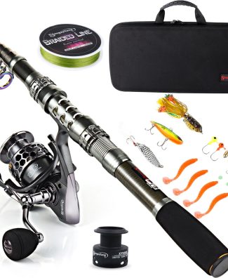 PLUSINNO Fishing Rod and Reel Combos Carbon Fiber Telescopic Fishing Pole with Reel Combo Sea Saltwater Freshwater Kit Fishing Rod Kit