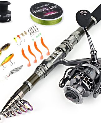 Sougayilang Fishing Rod Combos with Telescopic Fishing Pole Spinning Reels Fishing Carrier Bag for Travel Saltwater Freshwater Fishing